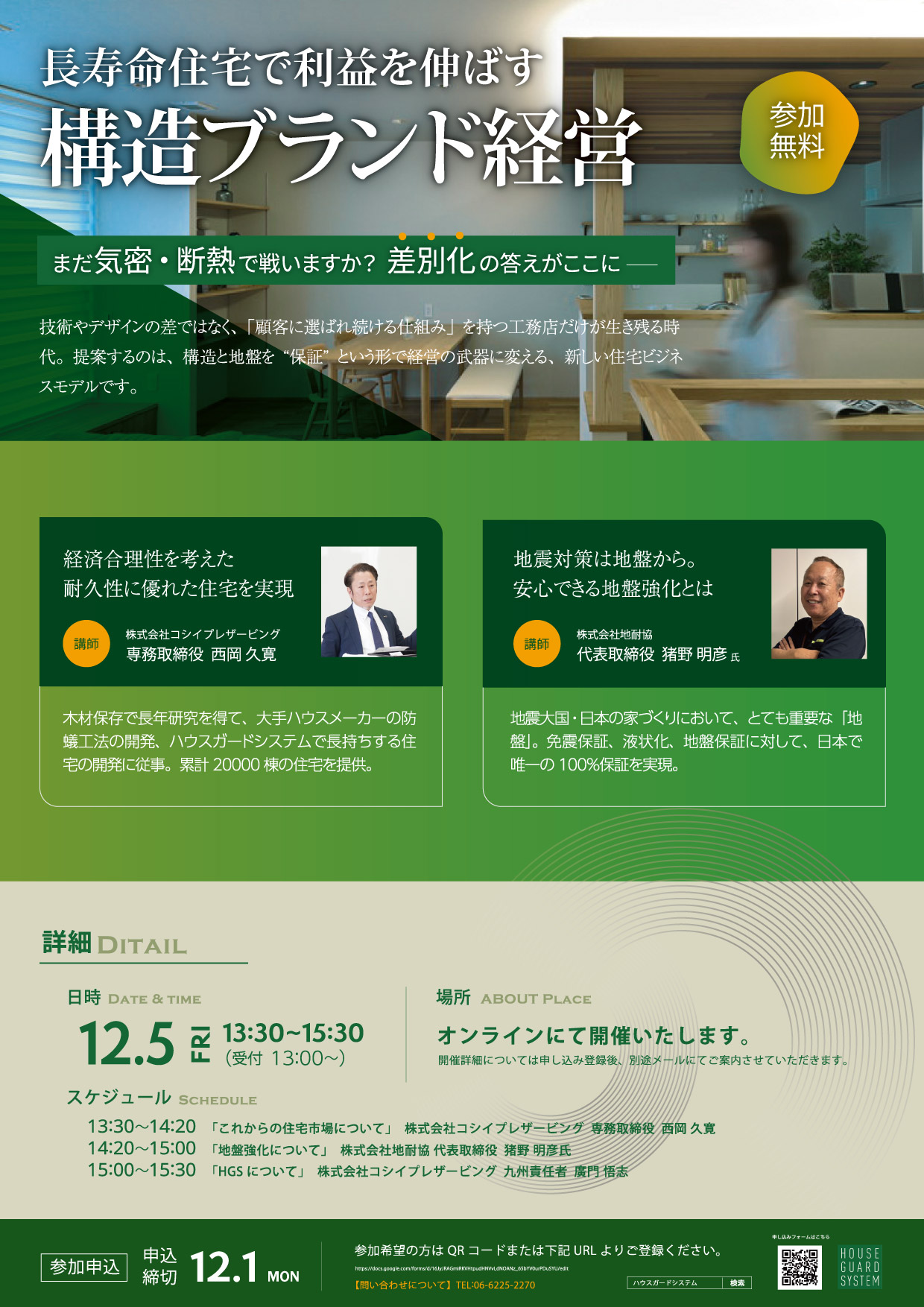 申込締切:長寿命住宅で利益を伸ばしたい工務店様、必見です!