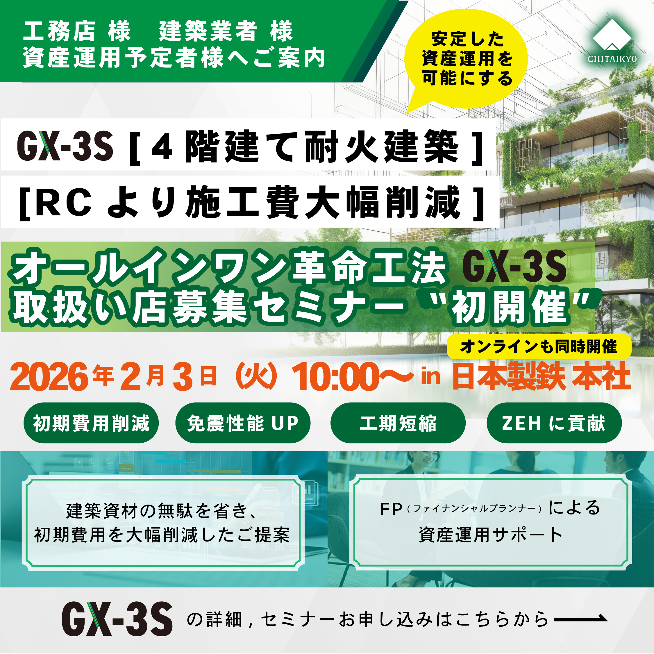 住宅業界に革命を。新工法「GX-3S」初公開セミナー開催!